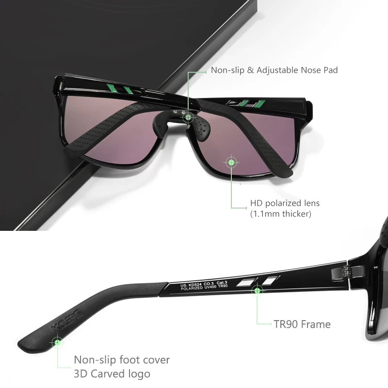 Солнцезащитные очки KDEAM TR90 для мужчин и женщин, поляризационные, в прямоугольной оправе, для спорта, вождения, размер XL, KD524