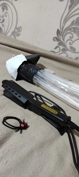 это самая длинная доставка 3мемяца. Открывала спор продавец отвеча подождите,ему повезло,что товар дошёл.Товар пришёл без коробки без инструкции в подарок резиночка!!!Плойка тонкая,как включается помог муж разобраться нагревается быстро вроде работает,решим отпаривания нет(((