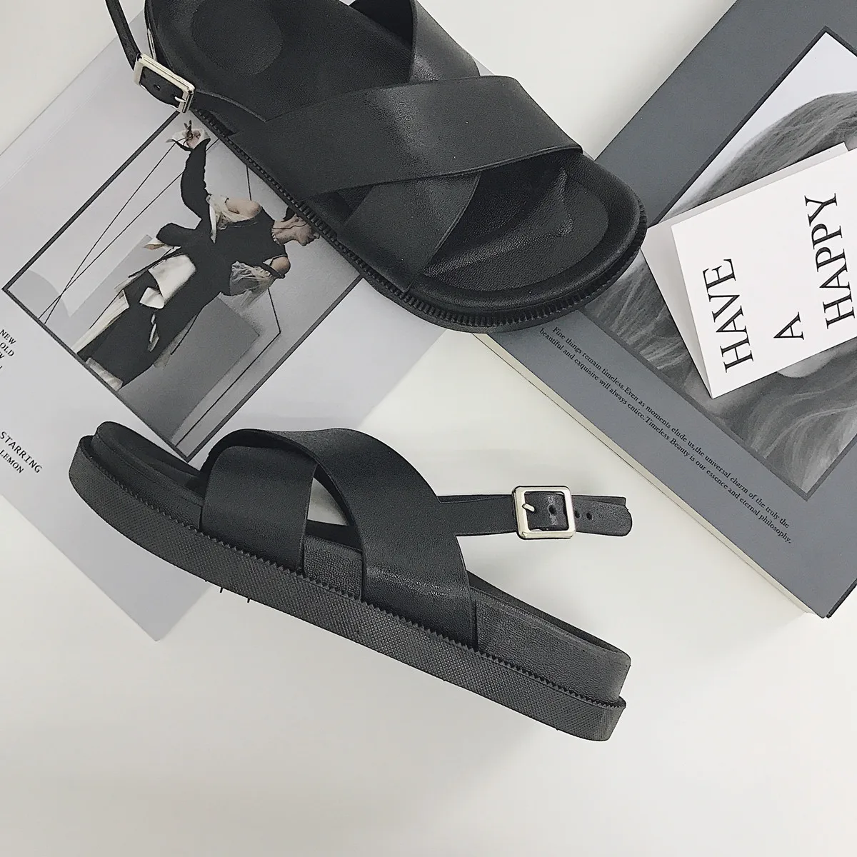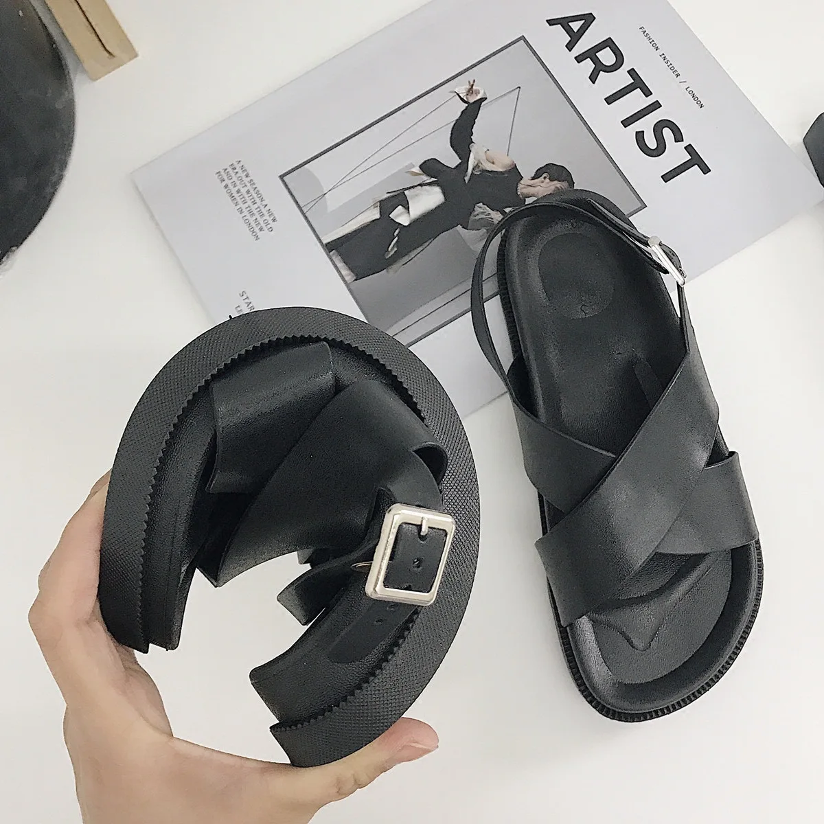 2021 женские сандалии, дикие шлепанцы на толстой подошве, перекрестные сандалии, повседневные, для колледжа, Нескользящие пляжные сандалии, женские летние