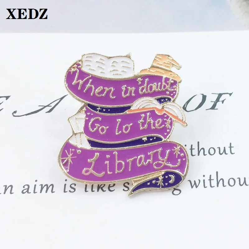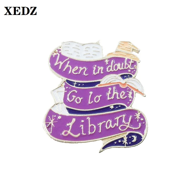 XEDZ лацканы с надписью на заказ, эмалированная заколка, детские подарки, когда сомневаетесь, идите в библиотеку, лента, звезда, Луна, изящное пальто, брошка на лацканы
