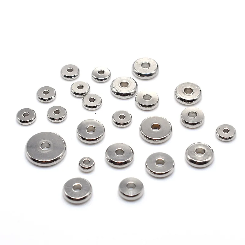 50 шт., плоские круглые бусины из нержавеющей стали 4, 5, 6, 8, 10 ...