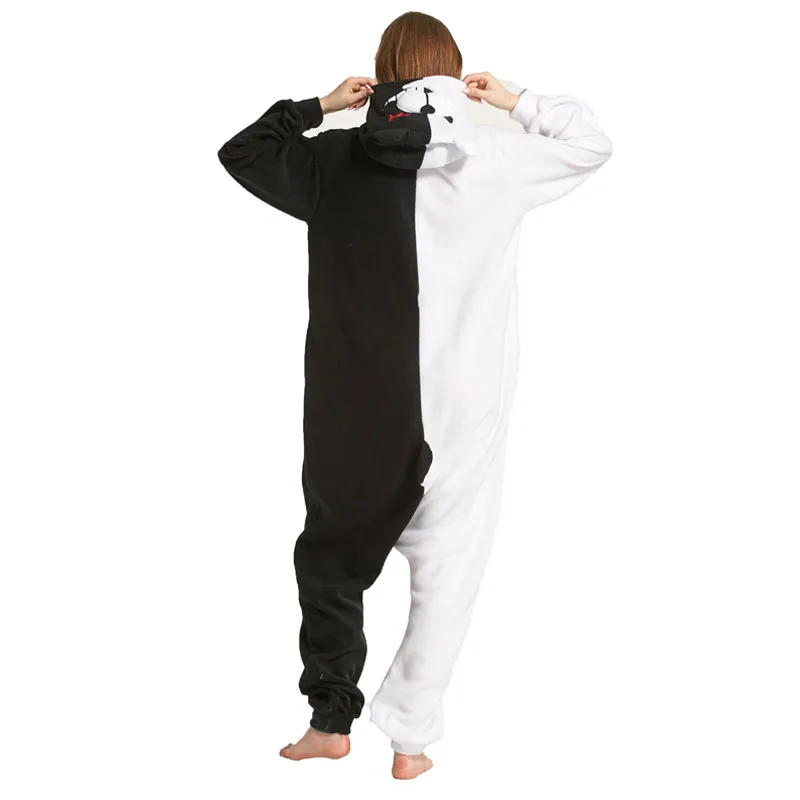 Черно-белый медведь кигурумис животный комбинезон Danganronpa Monokuma Пижама женский Взрослый Аниме комбинезон флисовая одежда для сна