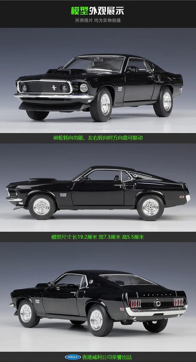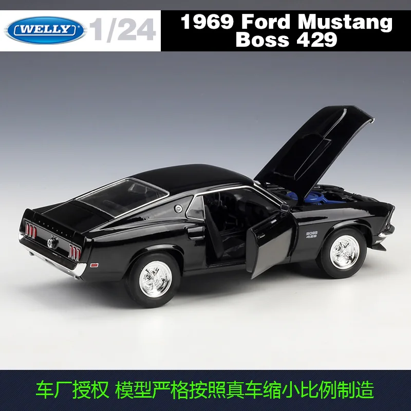 Модель автомобиля Welly 1:24 1969 Ford Mustang Boss 429 из сплава, отлитые и игрушечные транспортные средства, коллекционные подарки, транспортировка без пульта дистанционного управления