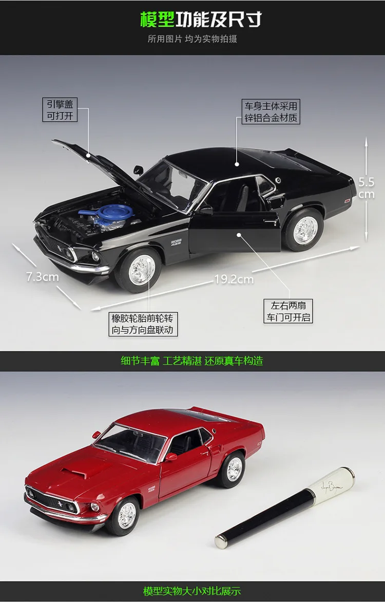 Модель автомобиля Welly 1:24 1969 Ford Mustang Boss 429, Литые и иг...