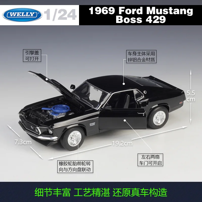Модель автомобиля WELLY 1:24 1969 Ford Mustang BOSS 429 из сплава, ...
