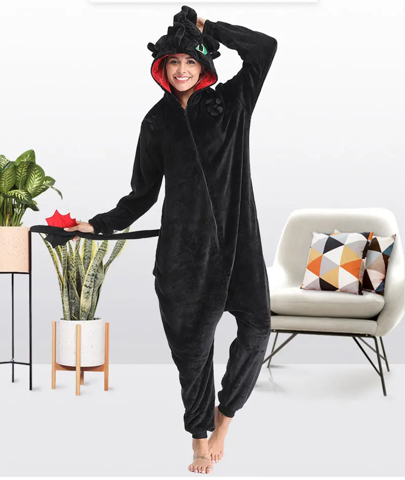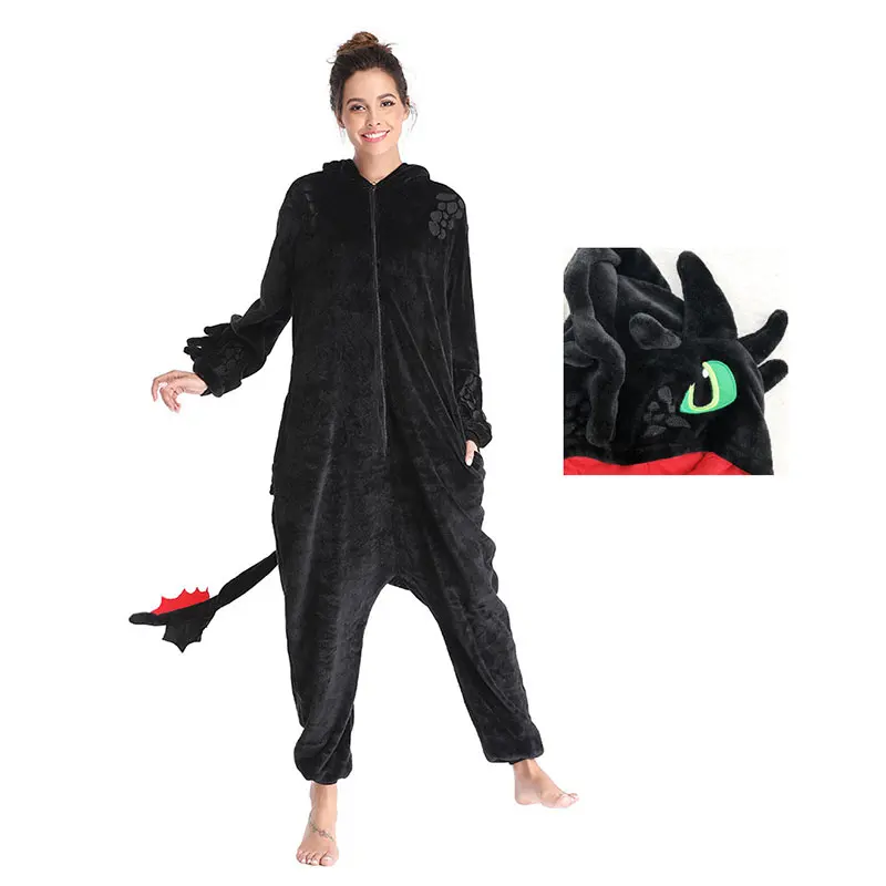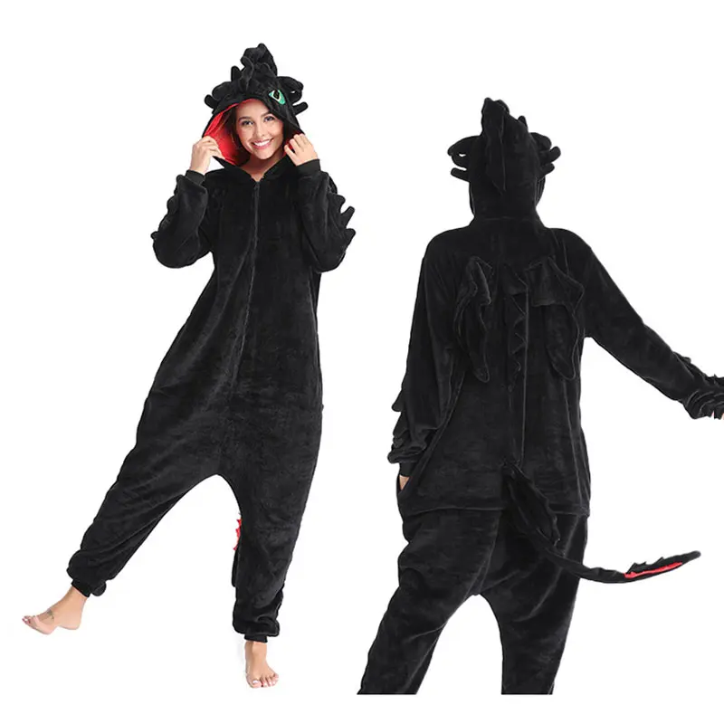 Фланелевая Пижама унисекс, комбинезон с беззубиком драконом, для де...