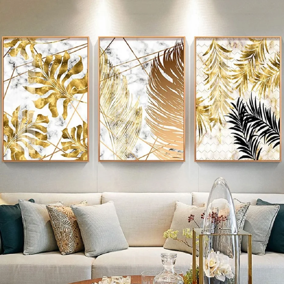 Картина на холсте с золотыми листьями в скандинавском стиле, настен...