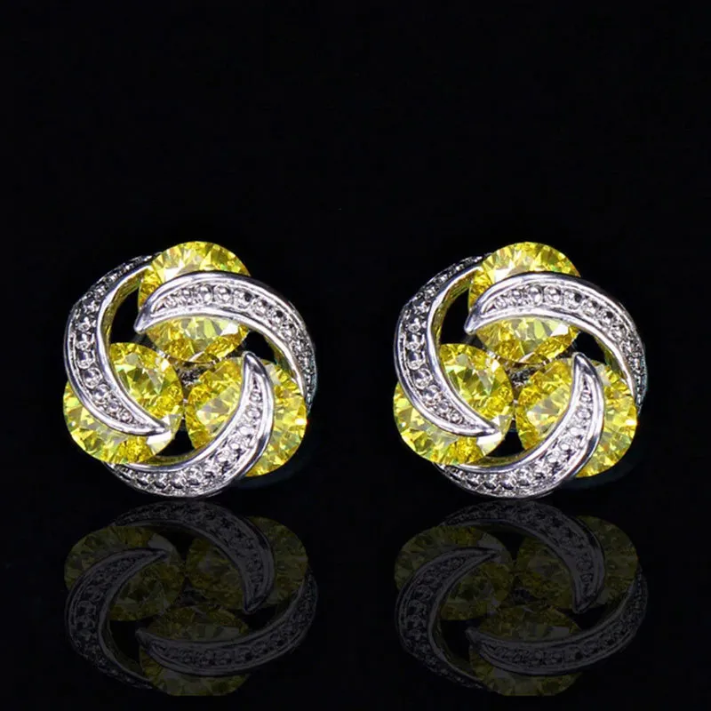 Корейские простые серьги-гвоздики с розовыми, желтыми и белыми крис...