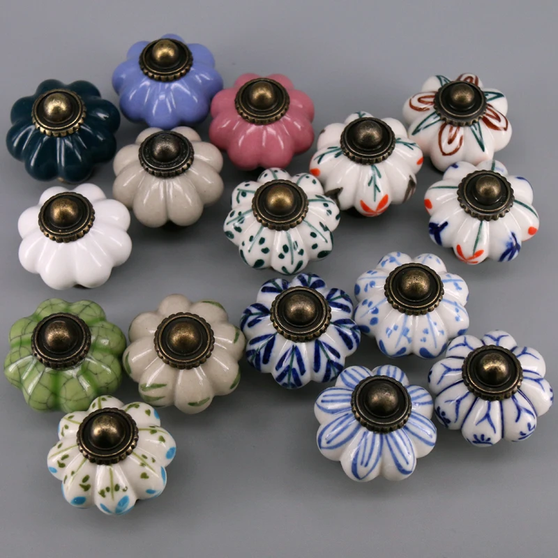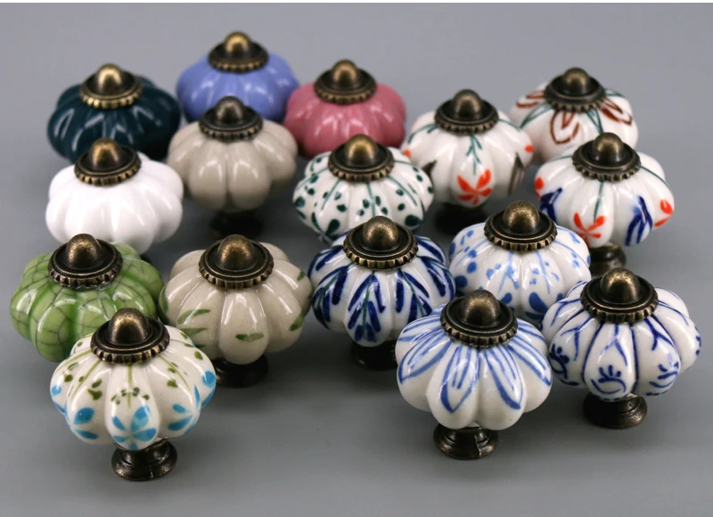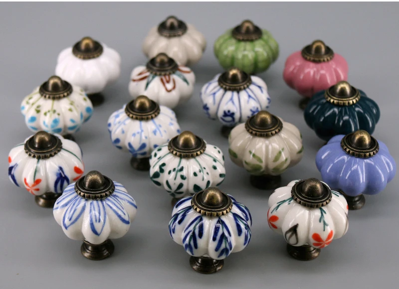 1x Горячие продажи тыквы керамические ручки для шкафчиков кухонный шкаф детская комната выдвижной ящик 33 мм фарфоровая ручка