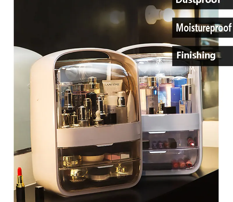 Органайзер для макияжа, прозрачный раскладной 2 ящика, туалетный столик, Настольная пластиковая косметическая коробка, контейнеры для хранения, держатель для украшений