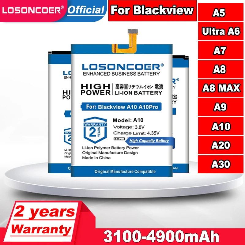 Аккумулятор LOSONCOER 3100-4900 мАч для Blackview A5 Ultra A6 A7 A8 A8 MAX A9 A10 A20 A20 Pro A30