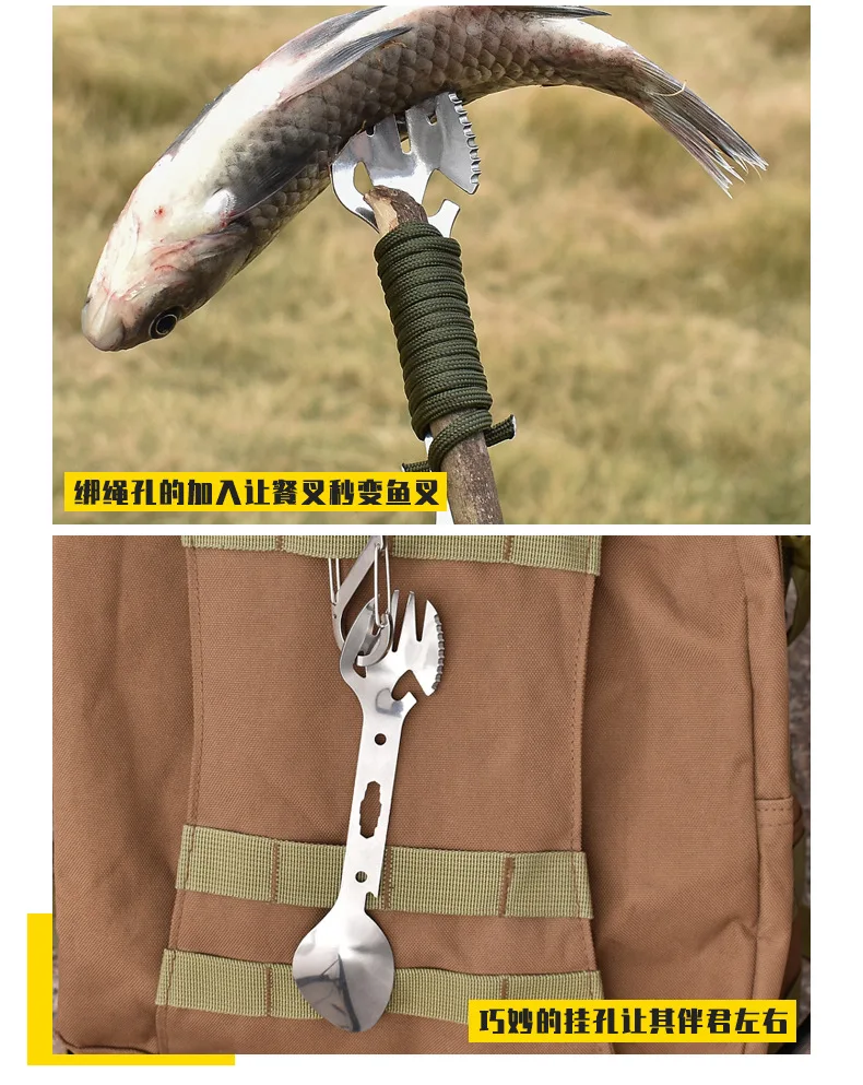 Ложка, вилка, зубчатое лезвие, открывалка для бутылок, отверстие для каната гарпуна, консервный нож,5 гаечных ключей (M2.5 / M3 / M3.5 / M4 / M5) Подвесные отверстия