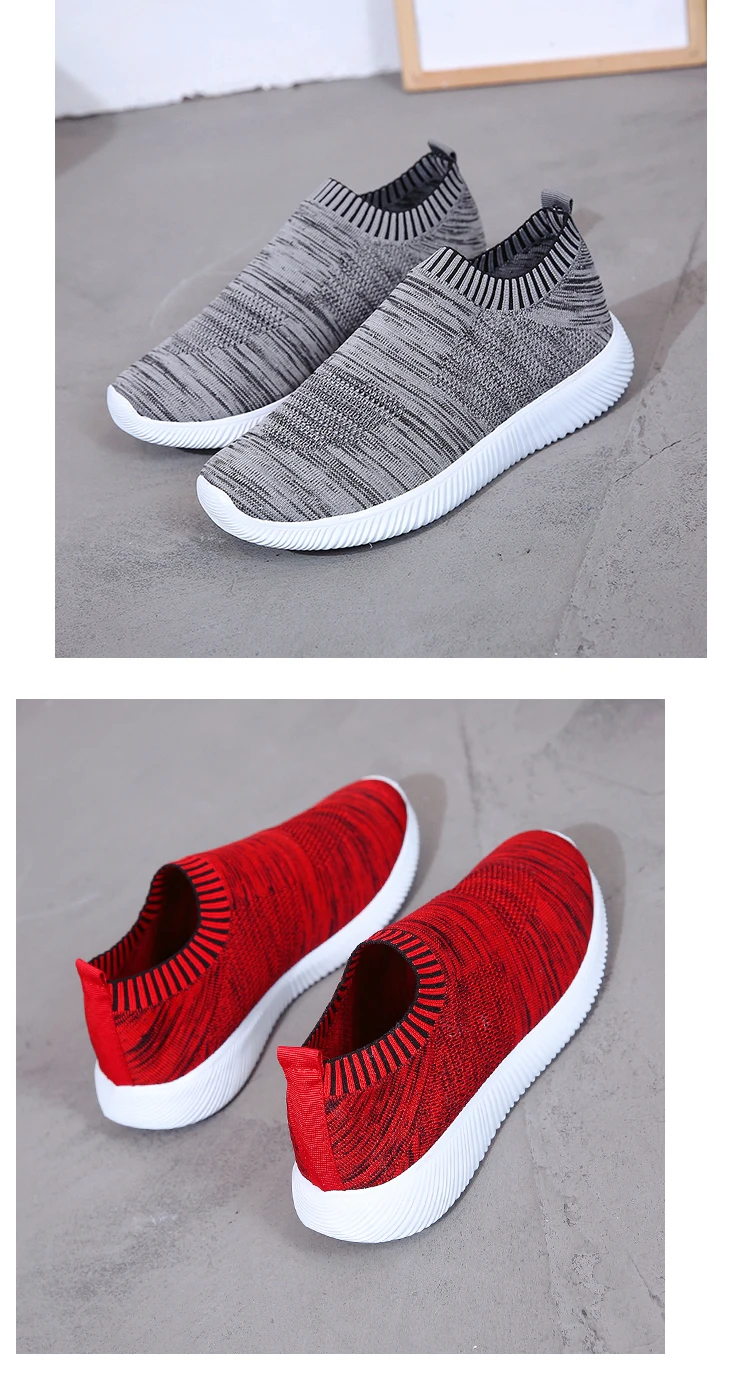 Кроссовки женские вязаные без шнуровки, Вулканизированная плоская п...