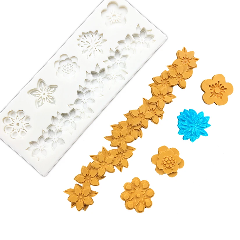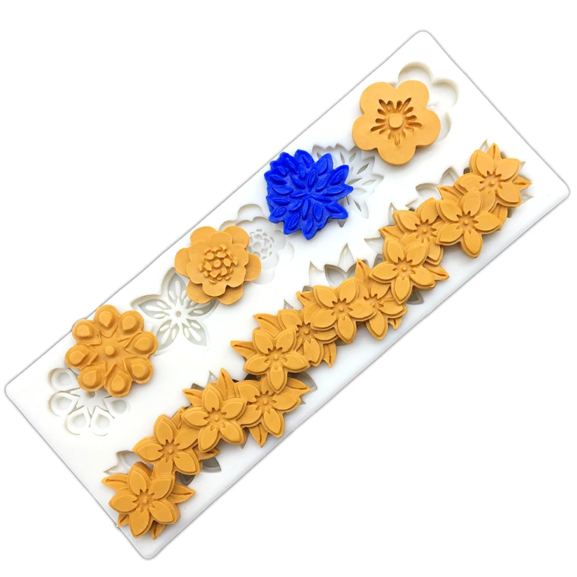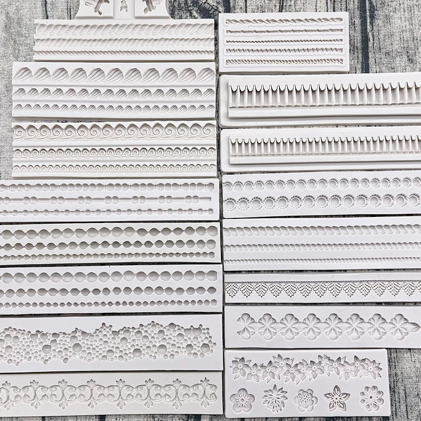 Силиконовая форма для выпечки, с жемчужной веревкой, волнистыми цветами, камнями, боковыми кружевами, инструменты для украшения тортов из мастики