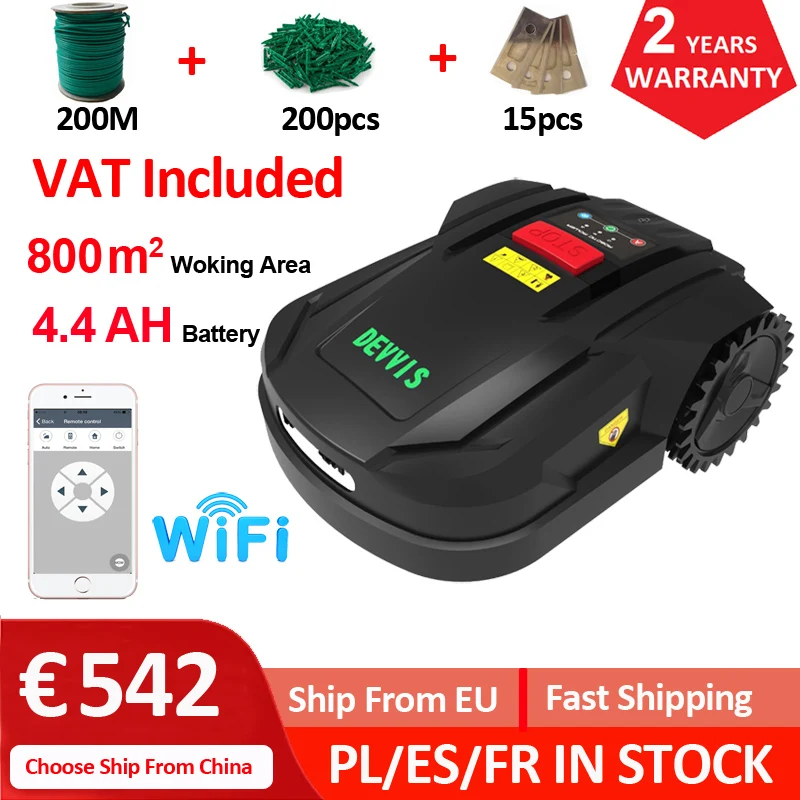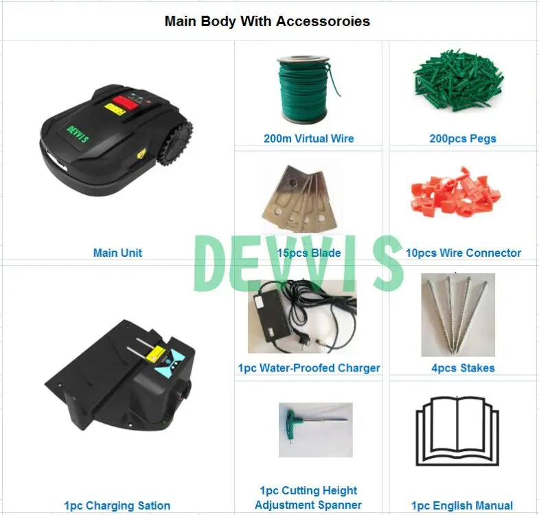 Двухлетняя гарантия 2022 7-го поколения DEVVIS робот газонокосилка H750T для небольшого газона, обновленная с 4.4Ah литиевой батареей, Wifi, расписание, гироскоп с общей 200 м проволокой + 200 шт колышки + 15 шт лезвие