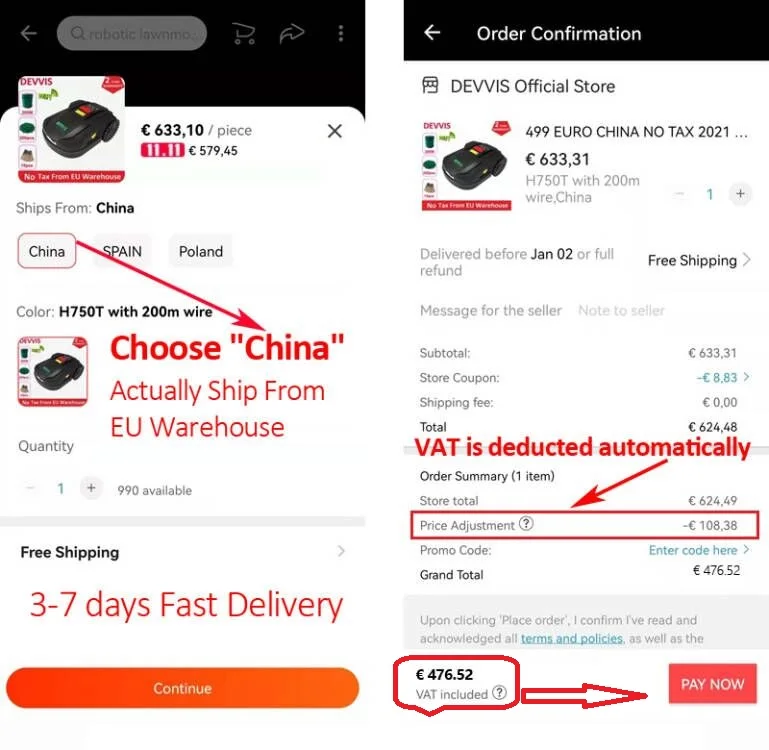 1.)Покупатель из ЕС, мы отправим Ваш заказ из Испании или Польши складов в соответствии с различными условиями запасов. Пожалуйста, убедитесь, что вы можете принять его перед размещением заказа.