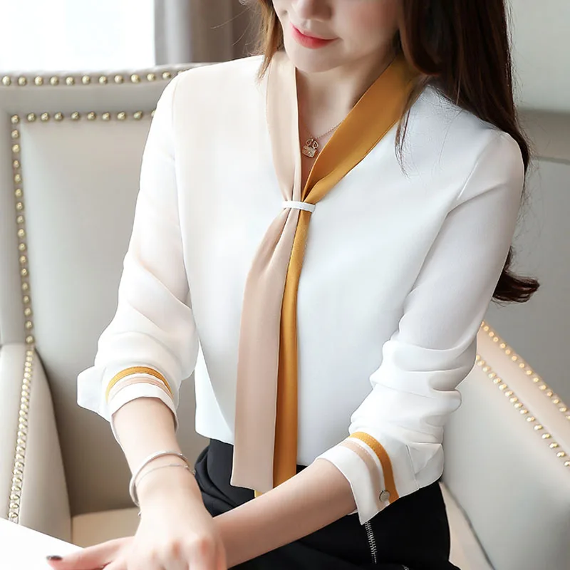 Новая Элегантная весенняя одежда, шифоновая блузка с длинным рукавом, однотонные свободные женские топы, винтажная блузка, модные женские блузки 2020 7188 50
