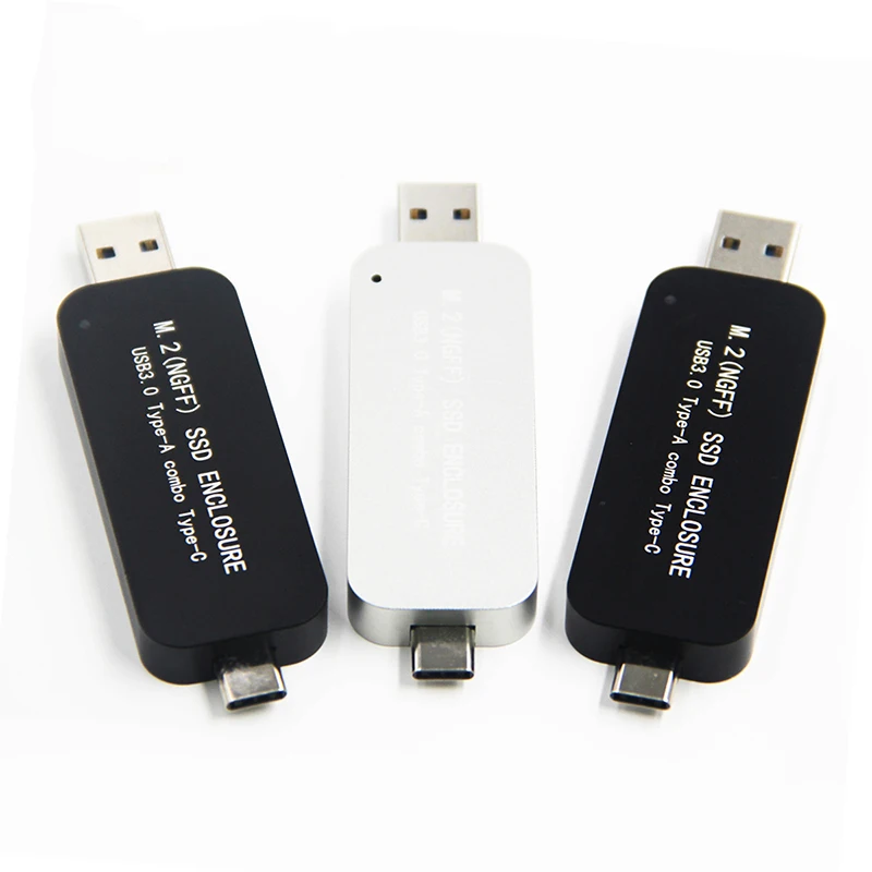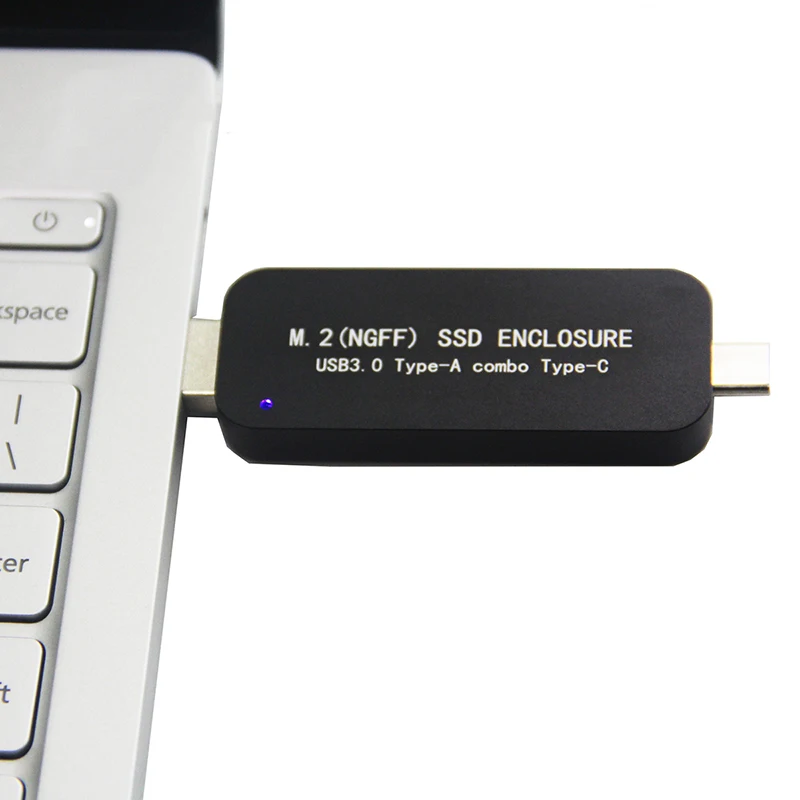 Название продукта: USB3.0 NGFF type-A + type-C жесткий диск коробкаРазъем SSD: ключСкорость передачи данных: 5 ГБ/сек.Размер: 84 мм x 25 мм x 8 ммВес нетто: 18 гЦвет: черный, серебристыйМатериал корпуса: алюминиевый сплавИнтерфейс: usb type-A/usb type-C/NGFF (M.2) 2230/2242Система поддержки: все WINDOWS/Linux/Mac OS, поддержка s OTG с поддержкой интерфейса type-C смартфонФункция: один интерфейс NGFF (M.2) может быть расширен через интерфейс usb type-A или интерфейс usb type-C, а интерфейс NGFF (M.2) может быть подключен к жесткому диску SSD 2230 и 2242 спецификаций. Может использоваться в качестве мобильного жесткого диска и мобильного телефона USB-диска.