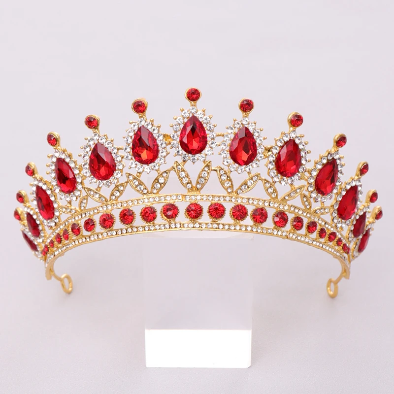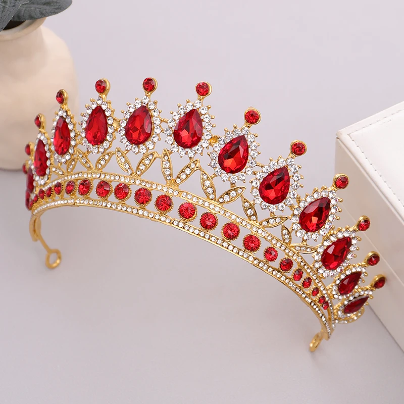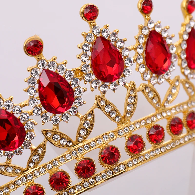Роскошная красные стразы хрусталь свадебная корона аксессуары для волос невеста тиары королева диадема пышное свадебное украшение для волос аксессуары для волос