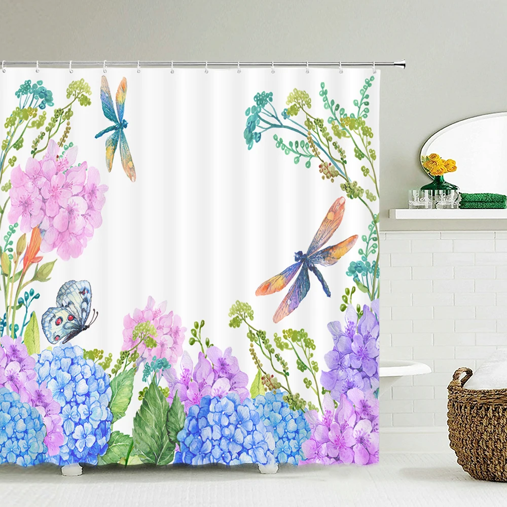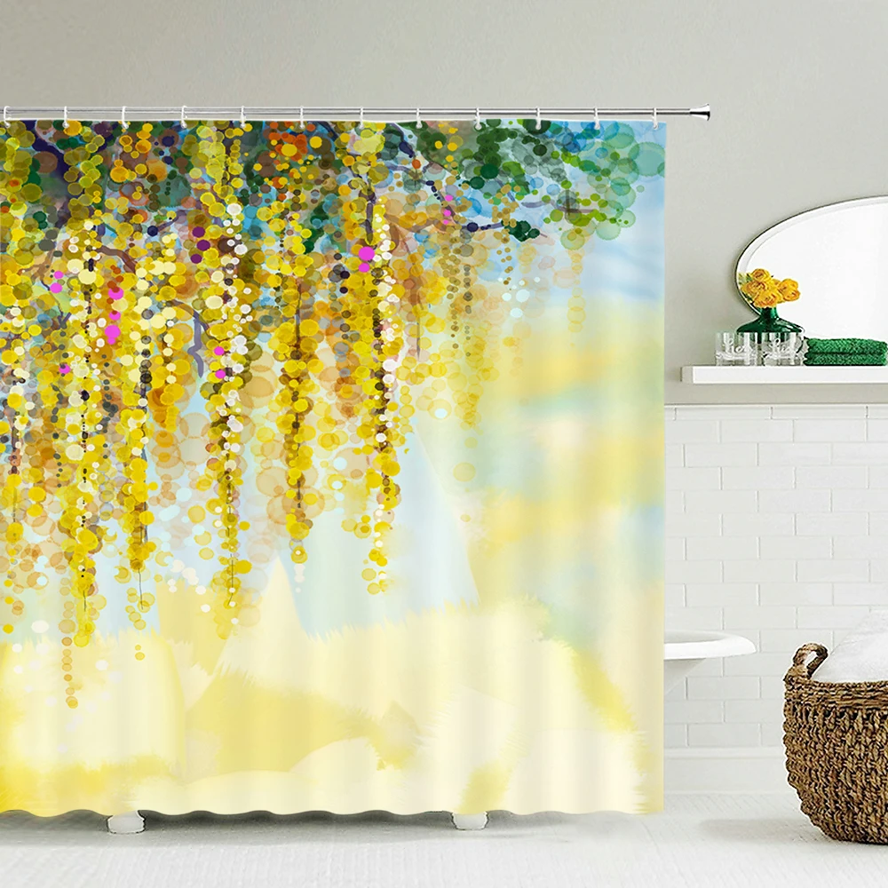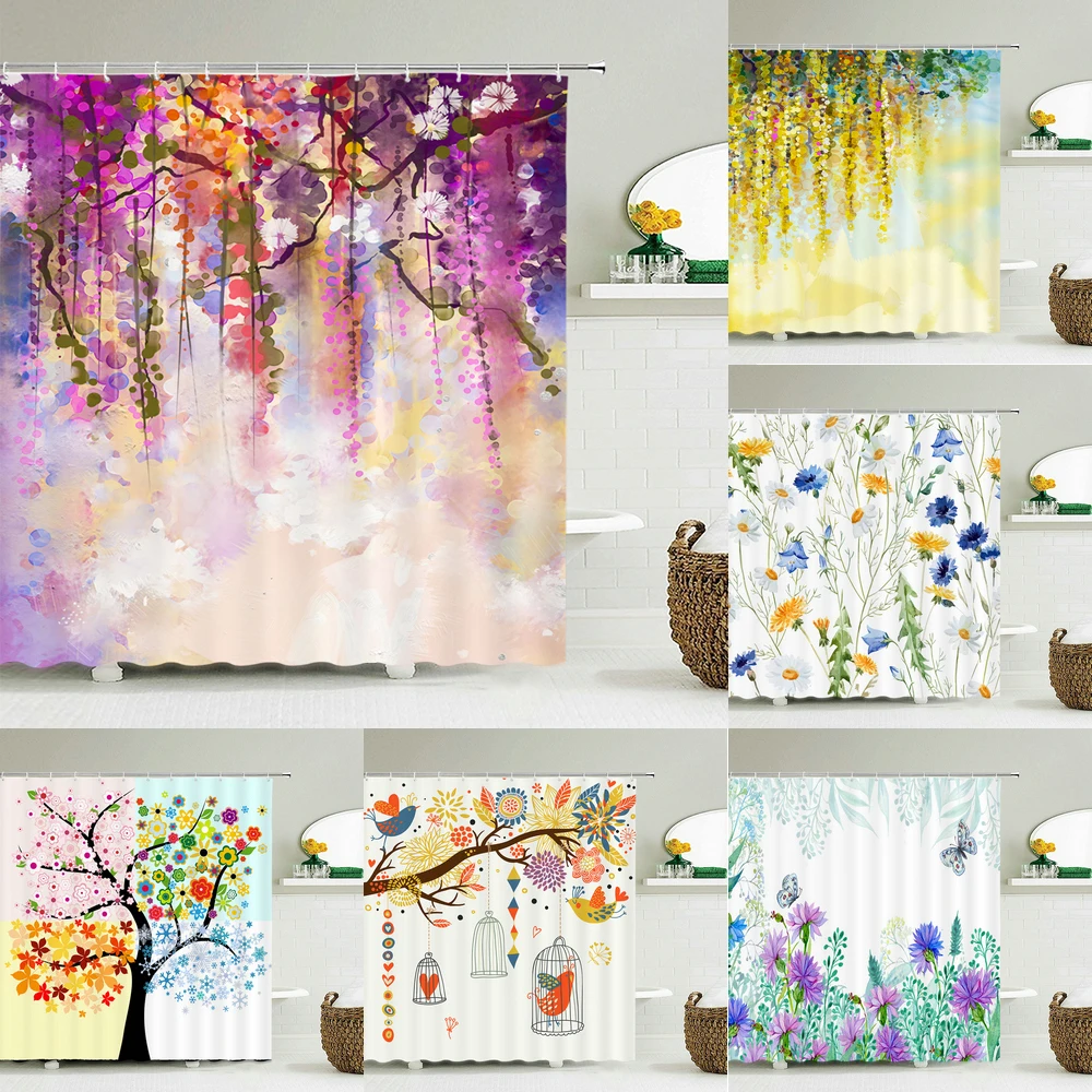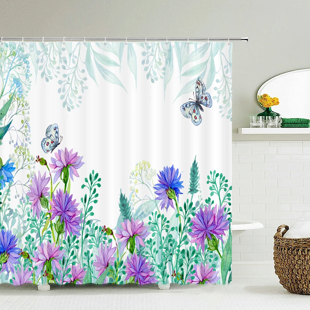 Занавеска для душа с изображением цветов и растений, водонепроницаемый тканевый Декор для ванной комнаты, несколько размеров, 240x180, экран для ванной