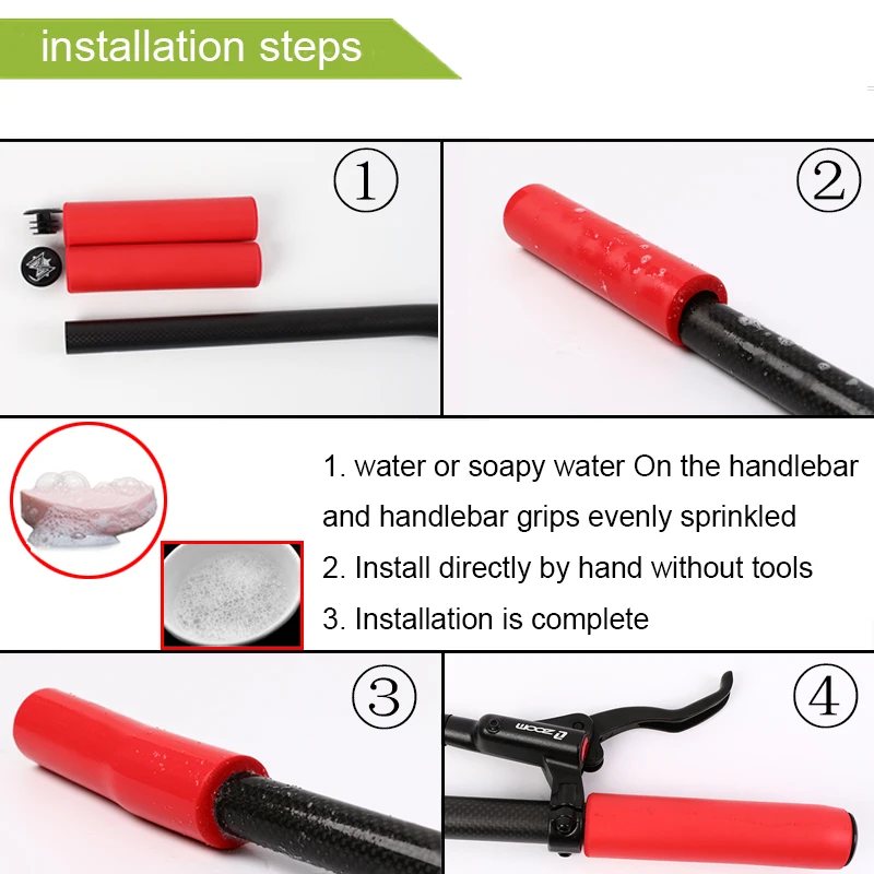 Посылка включает в себя: 1 пара * ручки руля + торцевые вилкиСпособ установки:Используйте смазанную воду, напримерМыльная вода(Не заливайте масло), чтобы намочить внутреннюю стену ручек руля и руля, чтобы можно было втолкнуть руль. Его можно использовать при сушке воды.(Примечание: Не спешите, когда медленно нажимаете на установку.)