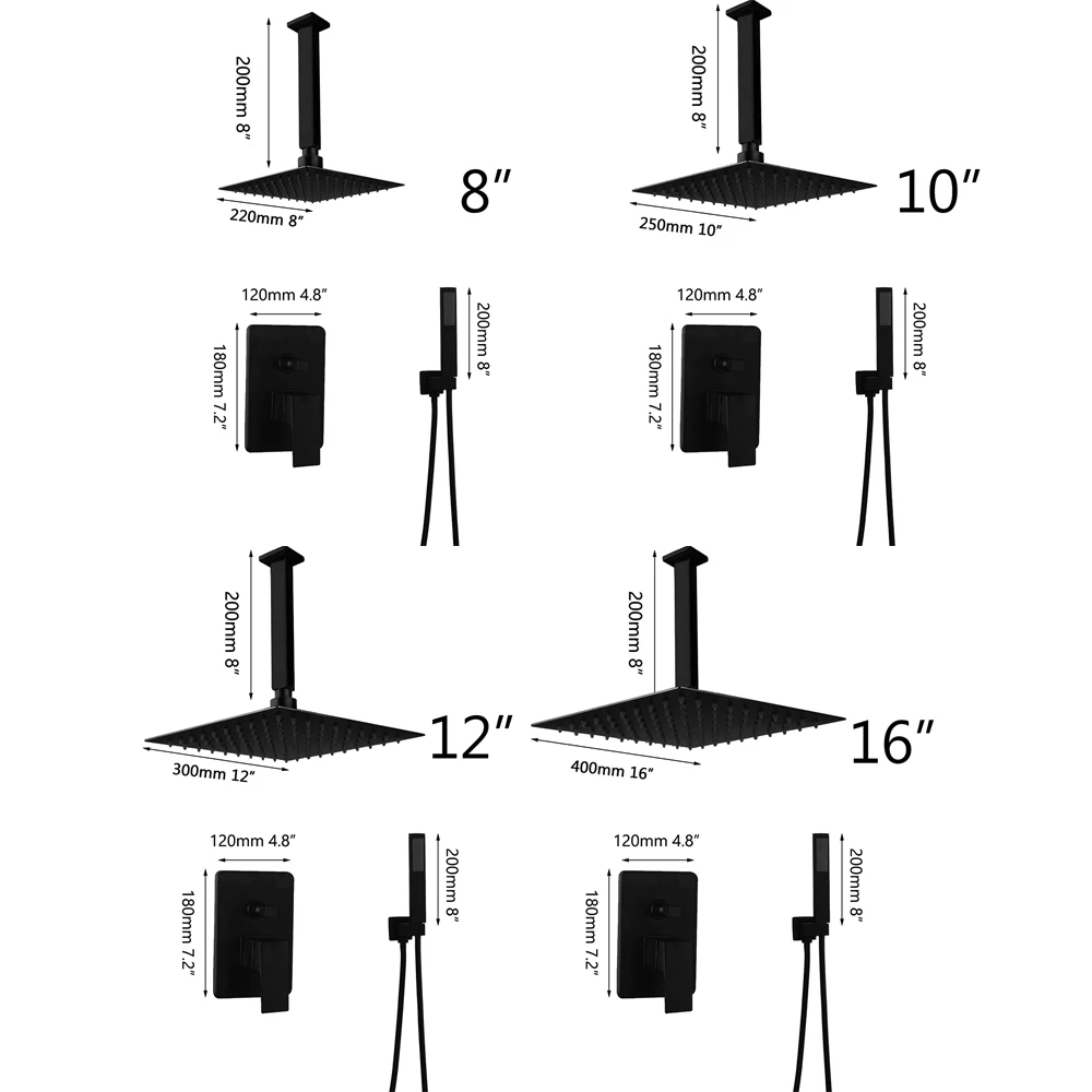 OUBONI 816 дюймов матовый черный набор для душа с дождевой насадкой...