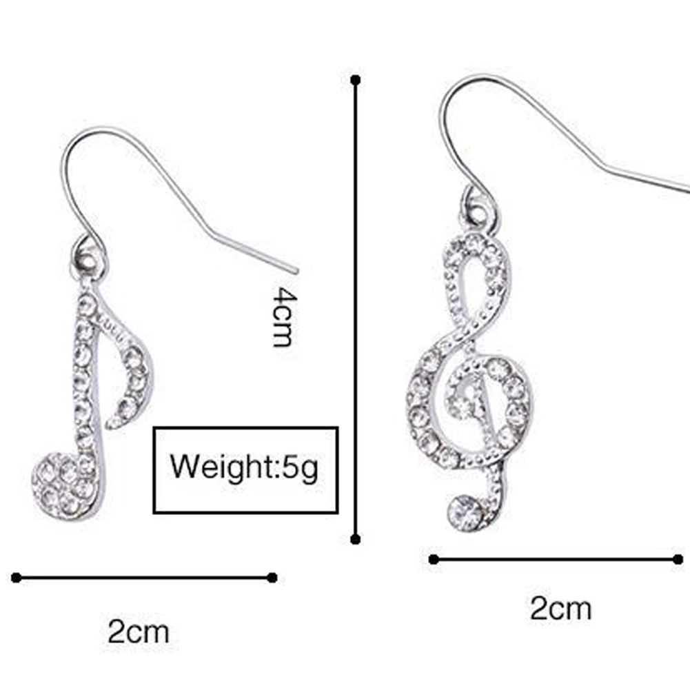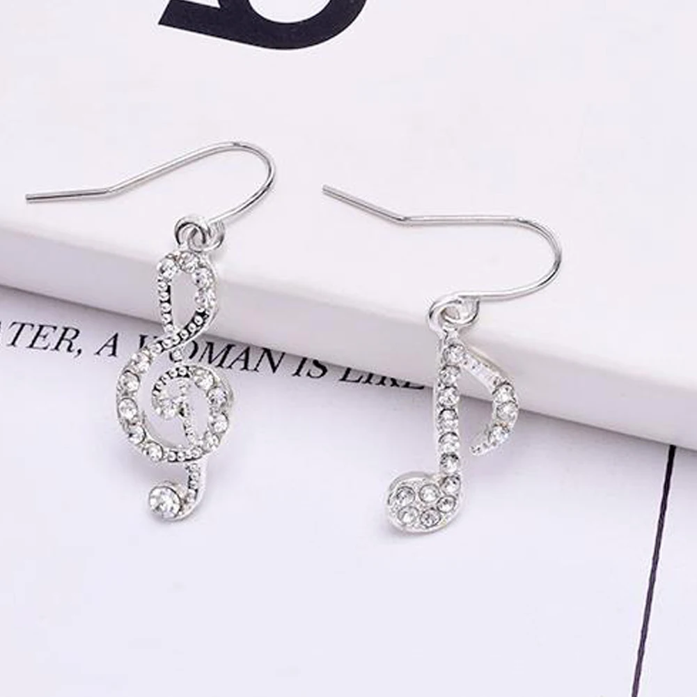 Модные Романтические элегантные Висячие серьги Стразы Асимметричные музыкальные ноты серебряного цвета ювелирные изделия для женщин и девочек для вечеринки свадьбы