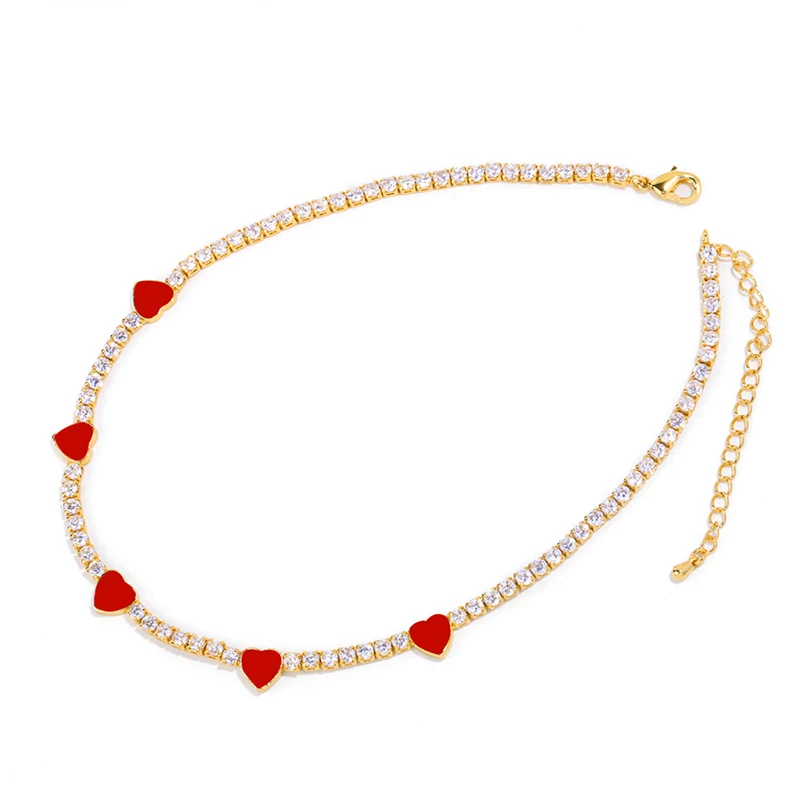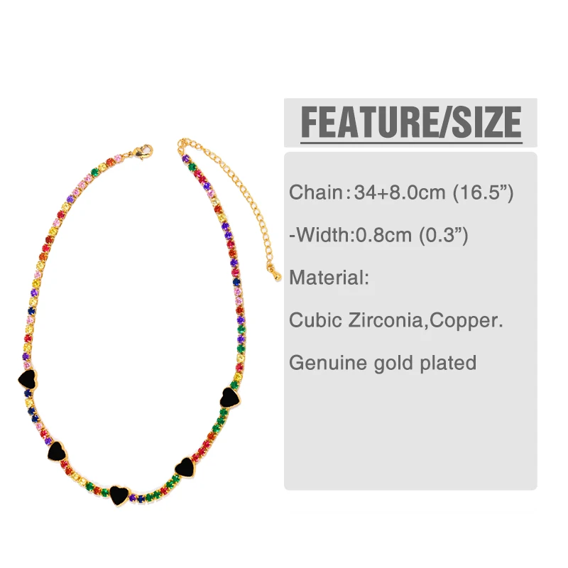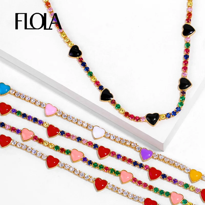 Ожерелье FLOLA с радужным теннисным покрытием для женщин, ожерелье с золотым кристаллом и цветным камнем в форме сердца, чокер с кубическим цирконием, женское ювелирное изделие, nкеп96