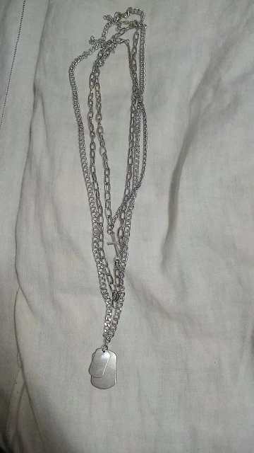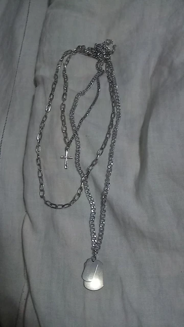 цепи классные. в комплекте идут три отдельных, поэтому их можно сочетать как хочешь и носить отдельно (на первом фото две из трех, на втором третью не полностью видно, но она достаточно длинная). выглядят хорошо, держутся неплохо. сильно долго скорее всего не протянут, но за такую цену товар вообще шикарный. рекомендую
