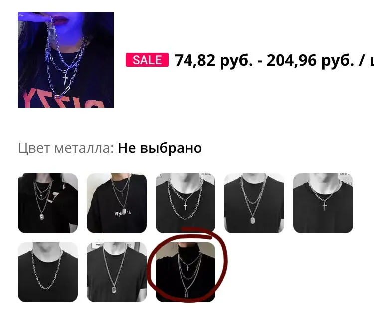 заказывала ту которую отметила на скрине; цепи классные!! каждую можно носить отдельно, самая длинная с замком, средняя без всего, самая короткая с крестом - у неё застёжка, через голову не надеть; лёгкие! пришли за две недели (11.11-25/26.11) до челябинска :) с продавцом не общалась.