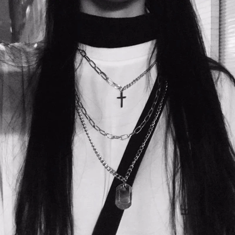 Женское и мужское многослойное ожерелье AOMU, серебристое металлическое ожерелье с подвеской-крестом в стиле хип-хоп, 2020