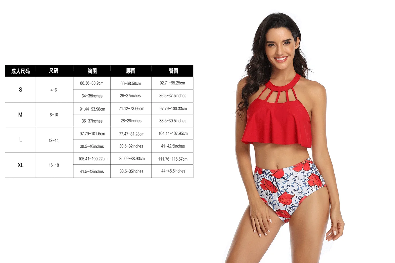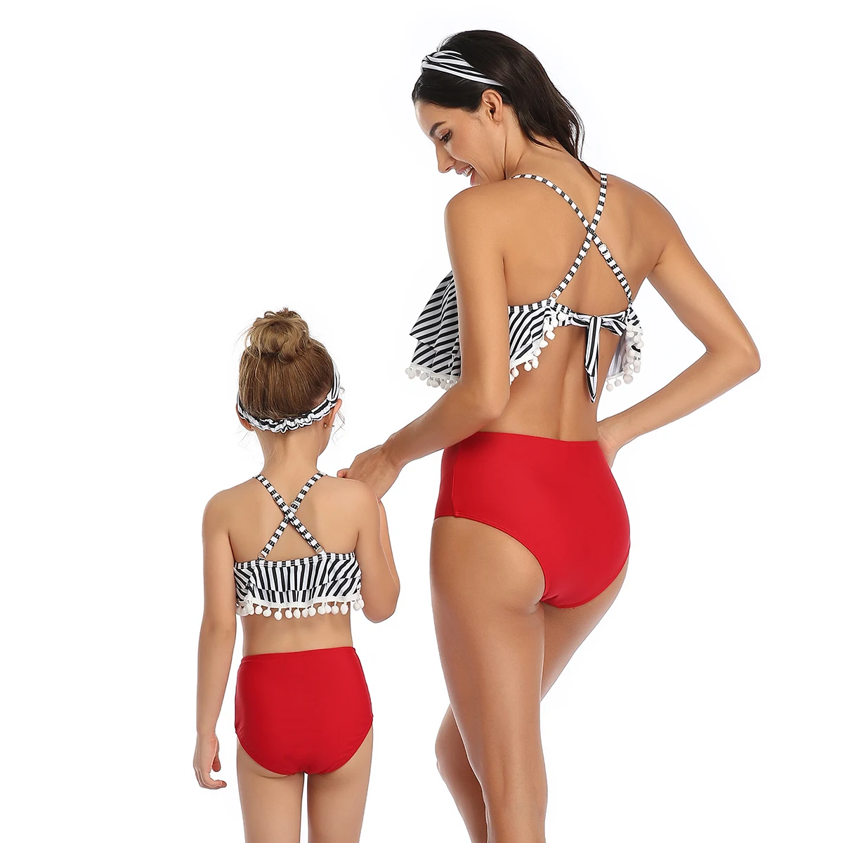 Купальник-бикини для мамы и дочки, с высокой талией и оборками