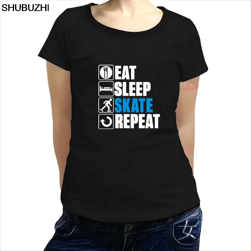 Летняя женская хлопковая Футболка Забавные футболки с графикой Eat Sleep Ice Skate с круглым вырезом, катание на коньках, Рождественский подарок на день рождения, Топ sbz410