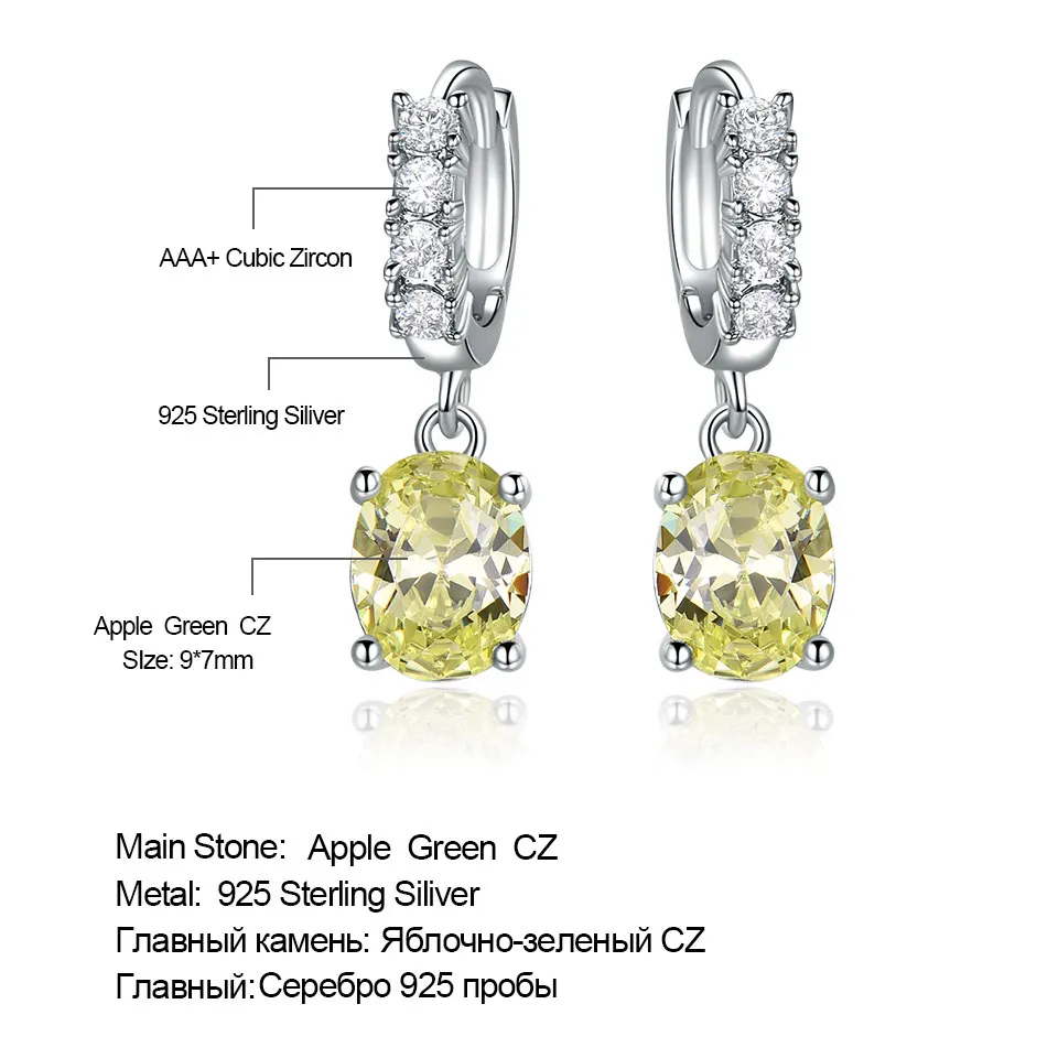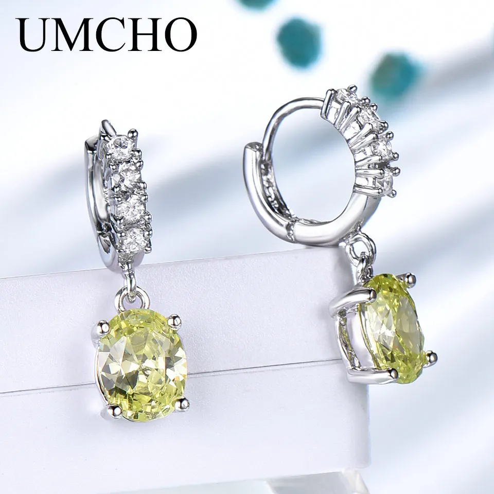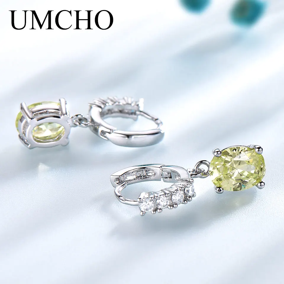 Серьги UMCHO женские из серебра 925 пробы с зелеными искусственными камнями