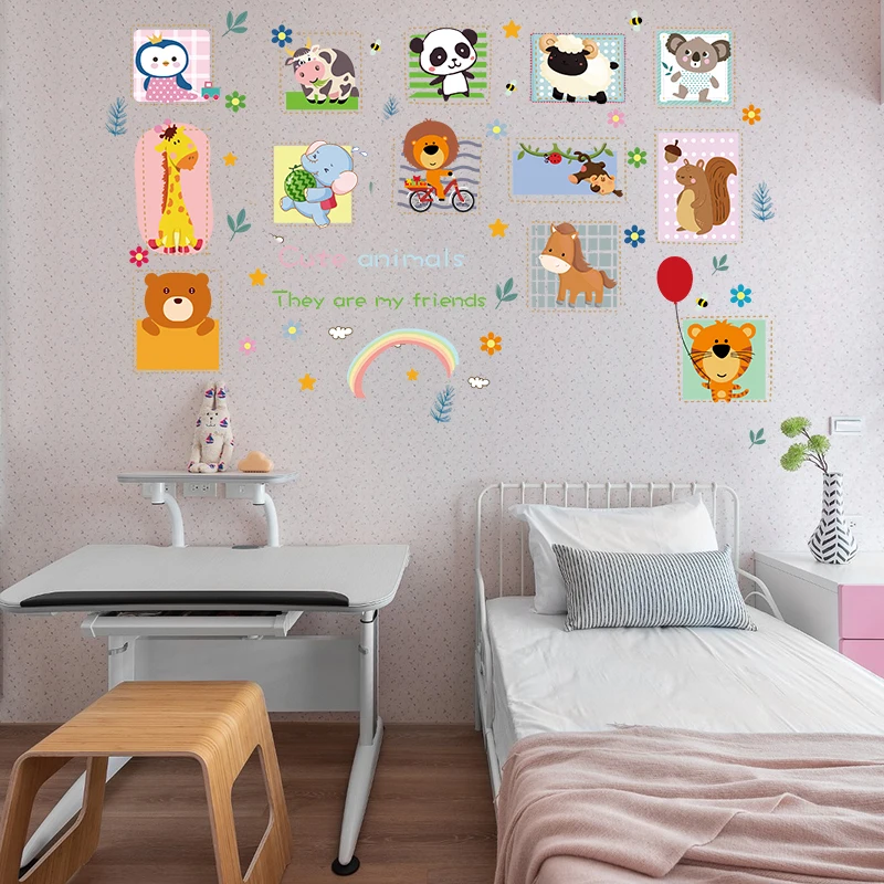 1 лист мультяшных милых облаков, птиц, воздушных шаров, кроликов, наклейки на стену для детской комнаты, сделай сам, украшение для дома, настенные наклейки с животными, наклейки на стену