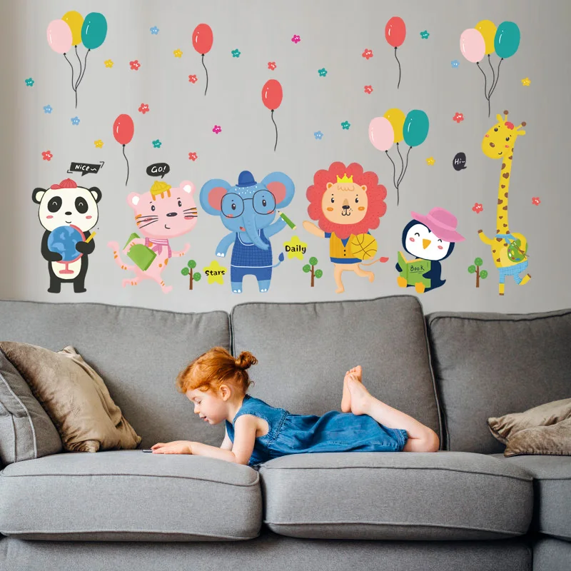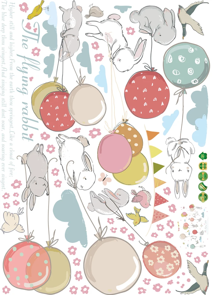 1 лист, Мультяшные милые облака, воздушные шары в форме птиц, кролика, настенные стикеры s для детской комнаты, сделай сам, украшение для дома, настенные наклейки с животными