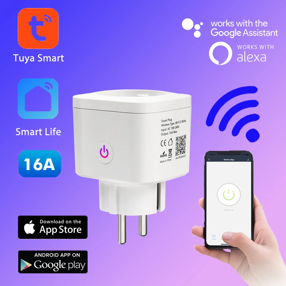 Tuya Smart 16A WiFi штепсельная вилка европейского стандарта