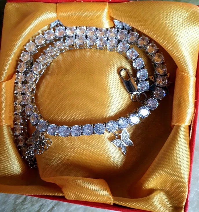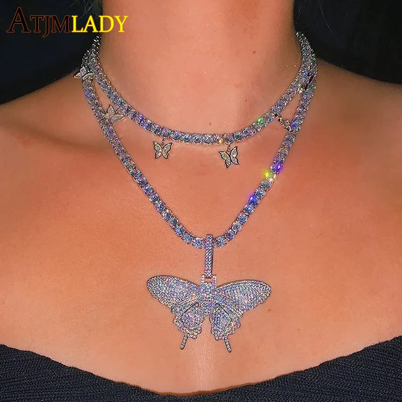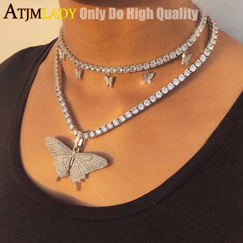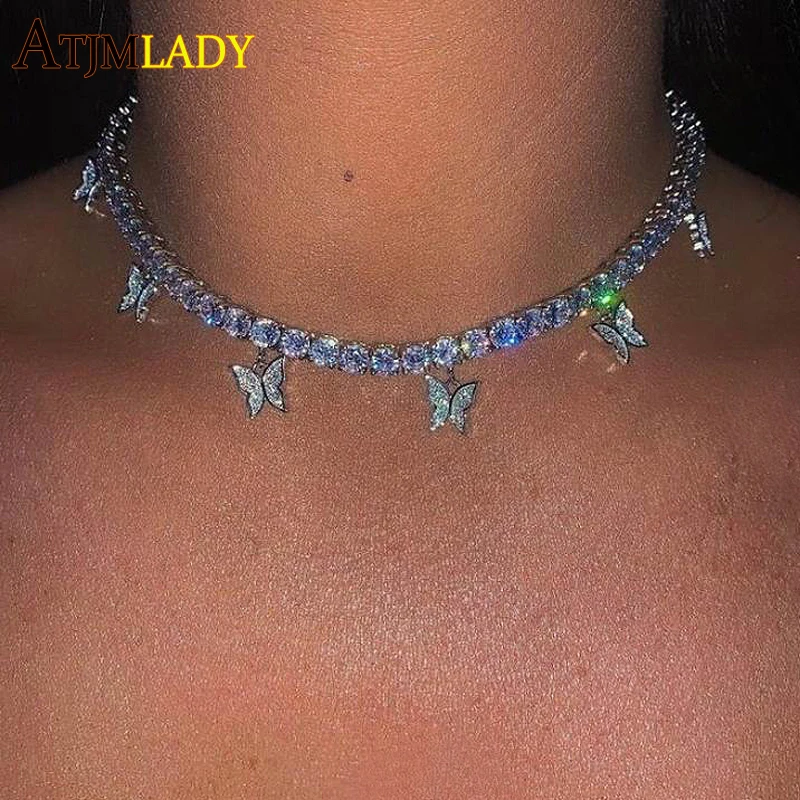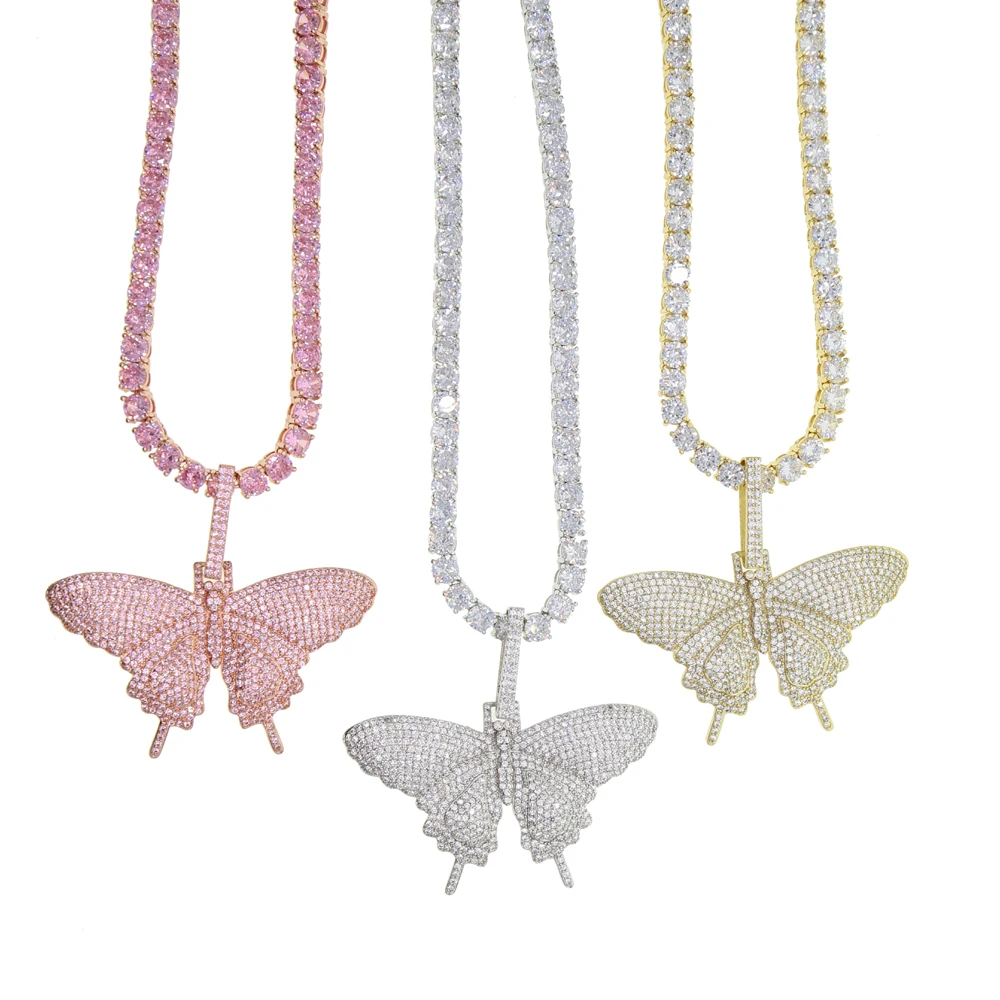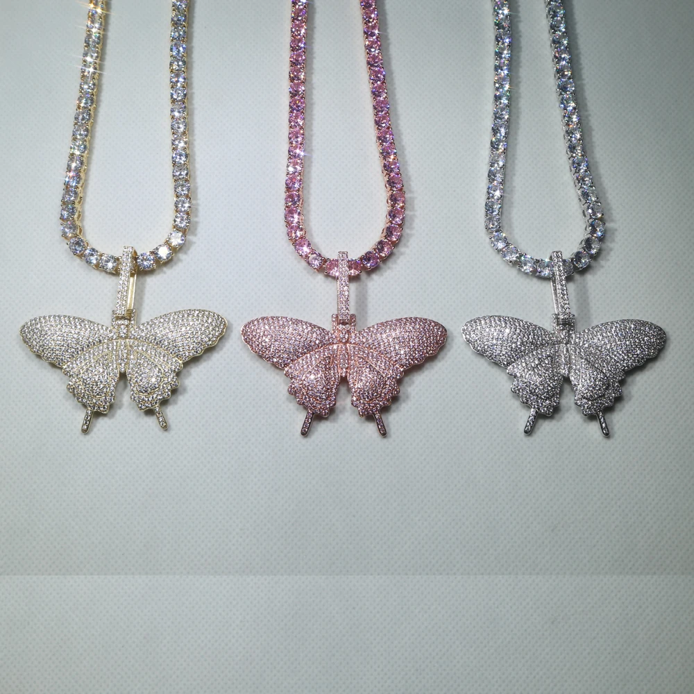 2021 Сверкающее розовое ожерелье с фианитами для женщин и девушек, Ювелирное Украшение 5 мм AAAAA Cz цепь для тенниса в стиле хип-хоп, Крутое розовое ожерелье с бабочкой из фианита
