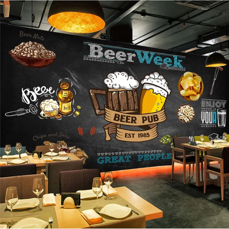 Настенная бумага на заказ с ручной росписью пива, бар, KTV, рестора...