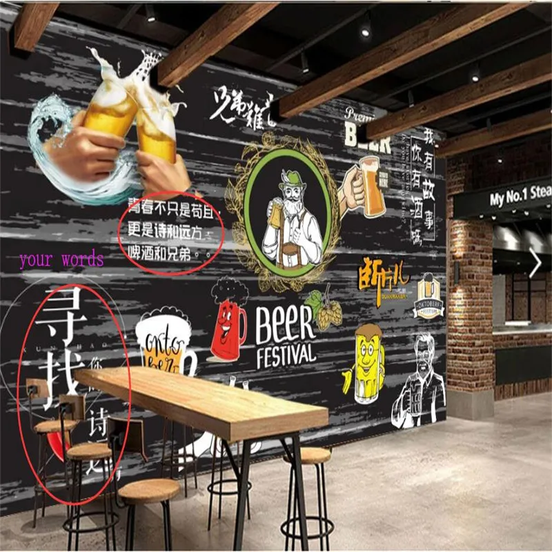 Настенная бумага в европейском и американском стиле с изображением пивной доски, 3D индивидуальный бар, Индустриальный декор, Настенная 3D Бумага