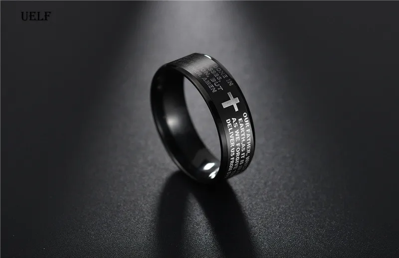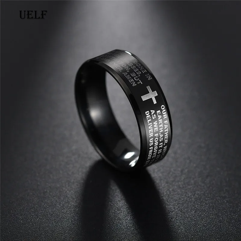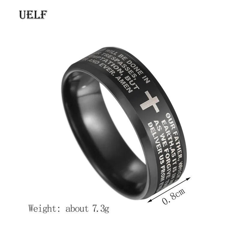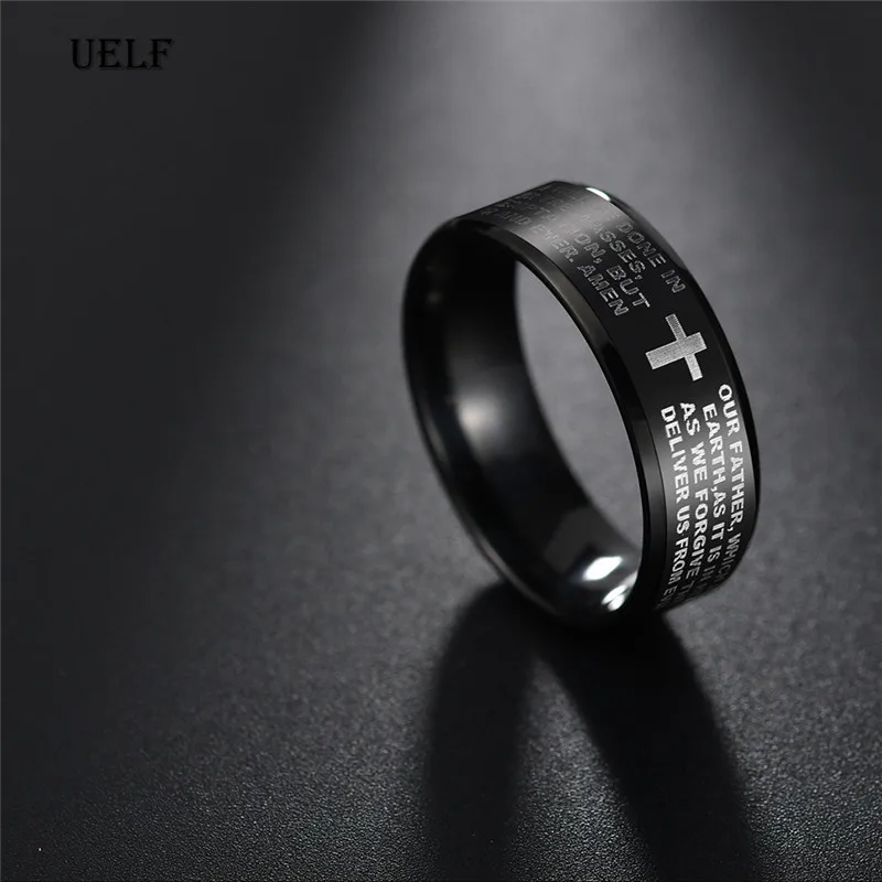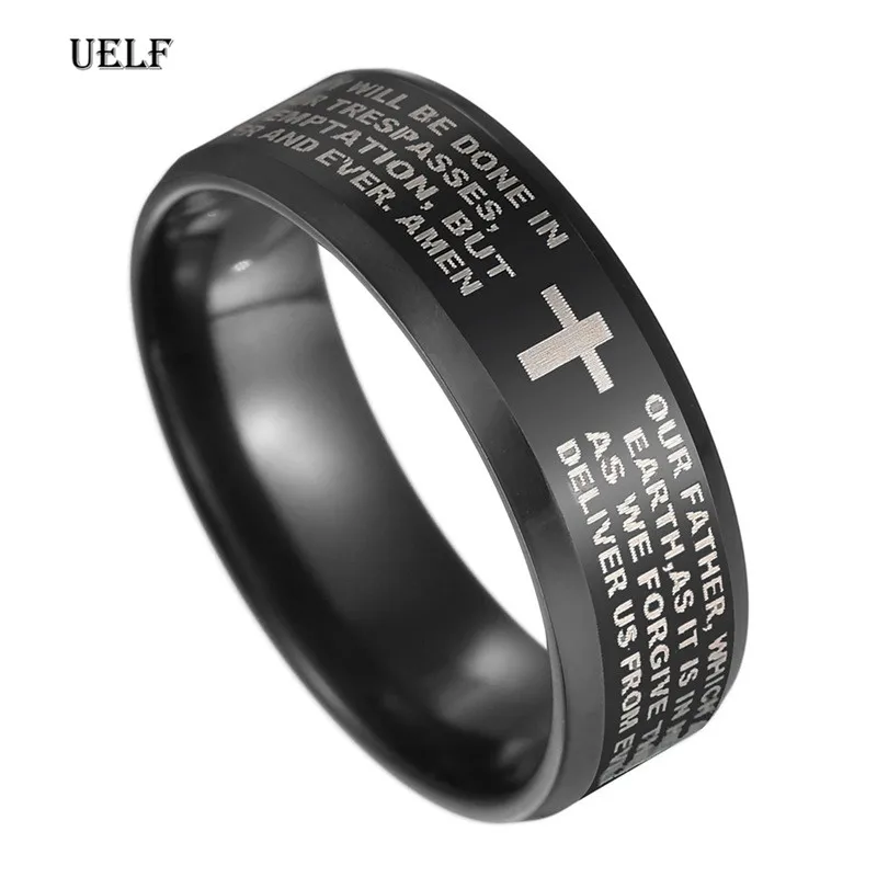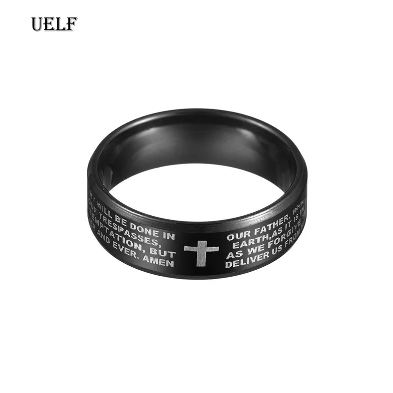 Мужские и женские кольца Uelf, черного цвета, из титановой стали, с надписью на английском языке, с изображением Иисуса