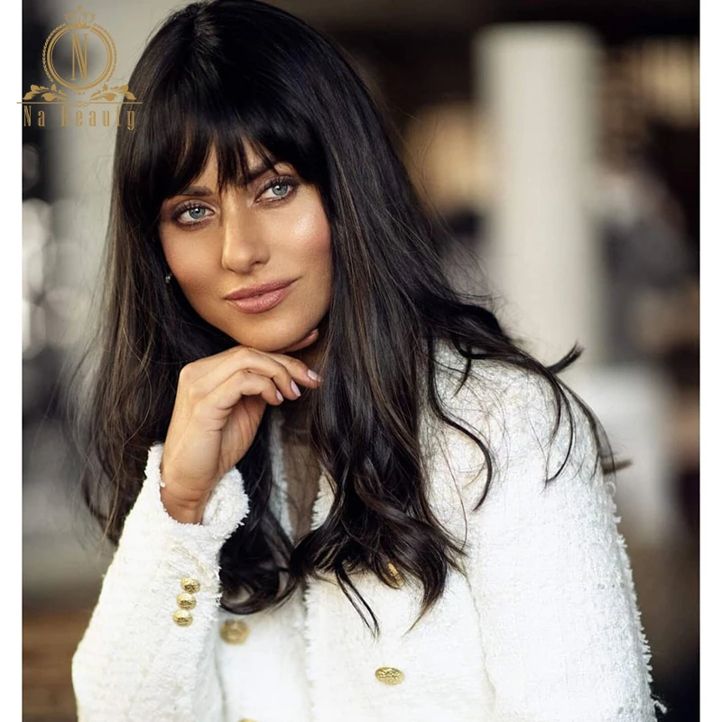 Парик с челкой, человеческие волосы, объемная волна, 360, кружевной фронтальный парик, предварительно выщипанный с челкой, 180 плотность, preprucked 360, кружевные парики Nabeauty