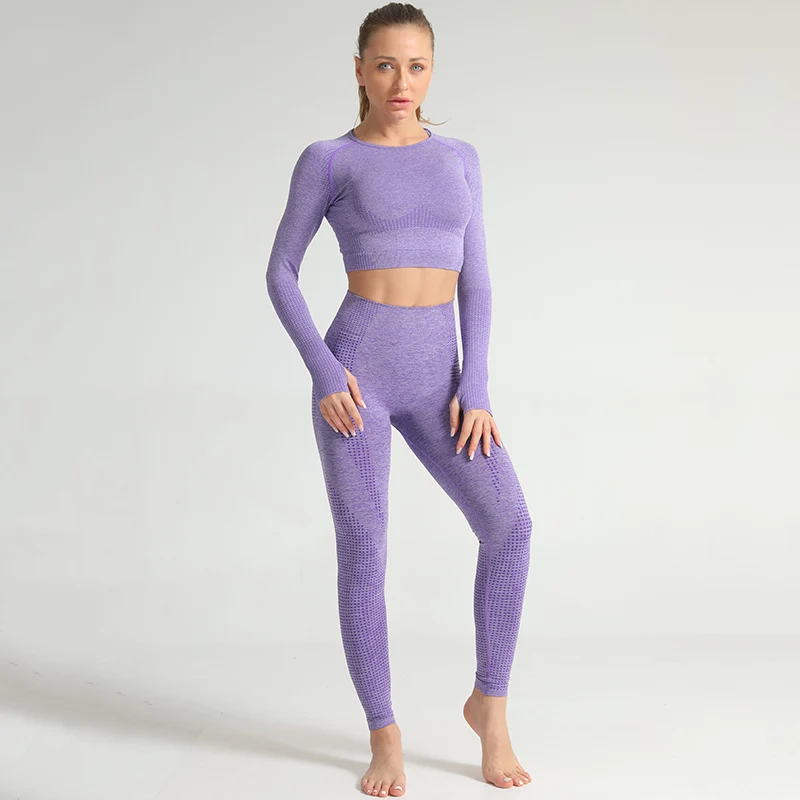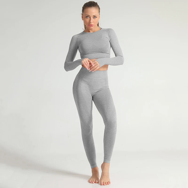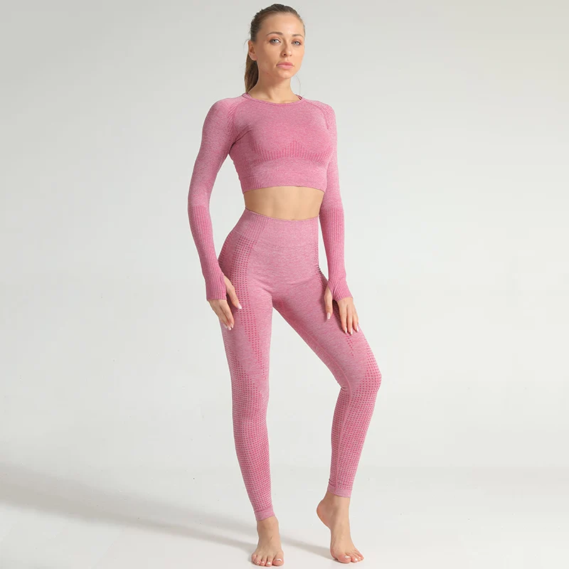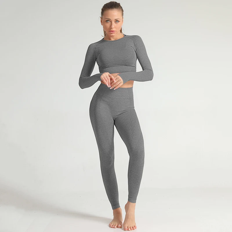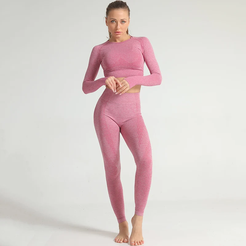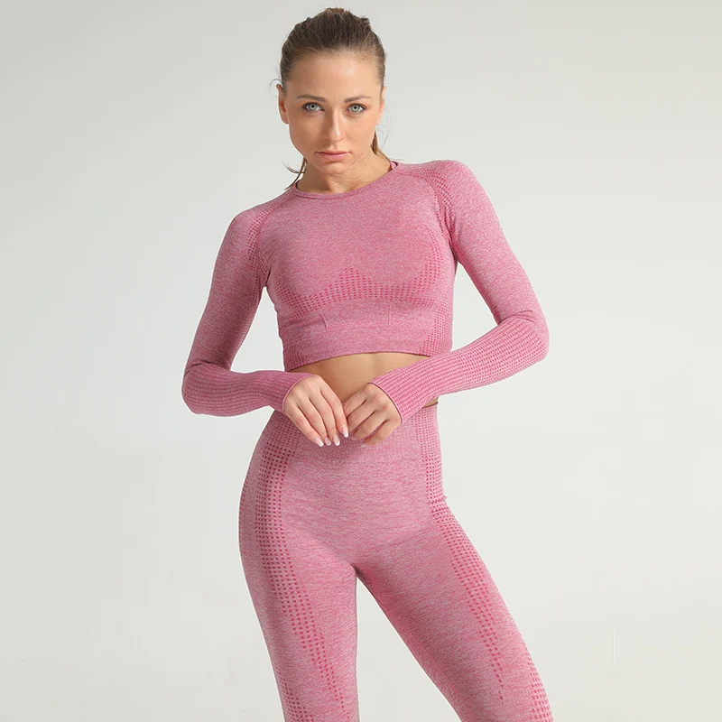 Женский бесшовный спортивный костюм из 2 предметов, леггинсы с высокой талией и Топ с длинным рукавом, Женский Повседневный комплект для бега