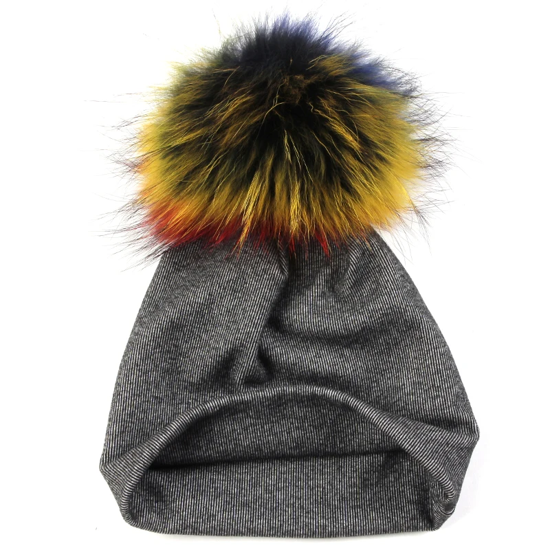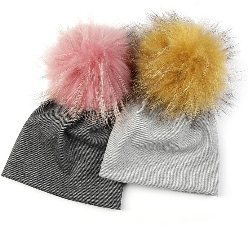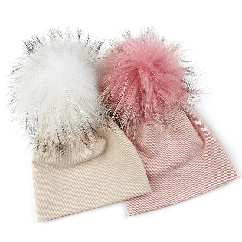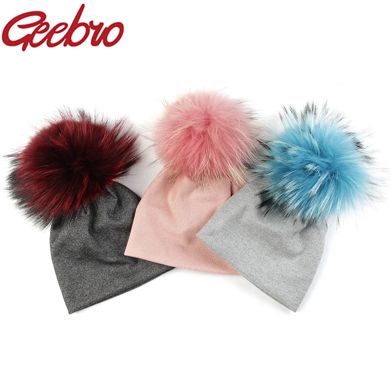 Geebro, для новорожденных девочек и мальчиков, 15 см, разноцветные, из натурального меха, помпон, хлопковые эластичные облегающие шапки, шапки, мягкие зимние детские подарки