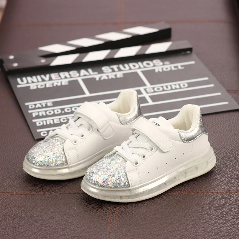 Весенние детские спортивные кроссовки, Повседневные кроссовки для маленьких мальчиков, Детские сетчатые кроссовки с блестками, Брендовая обувь для девочек для бега, белые кроссовки, Новинка