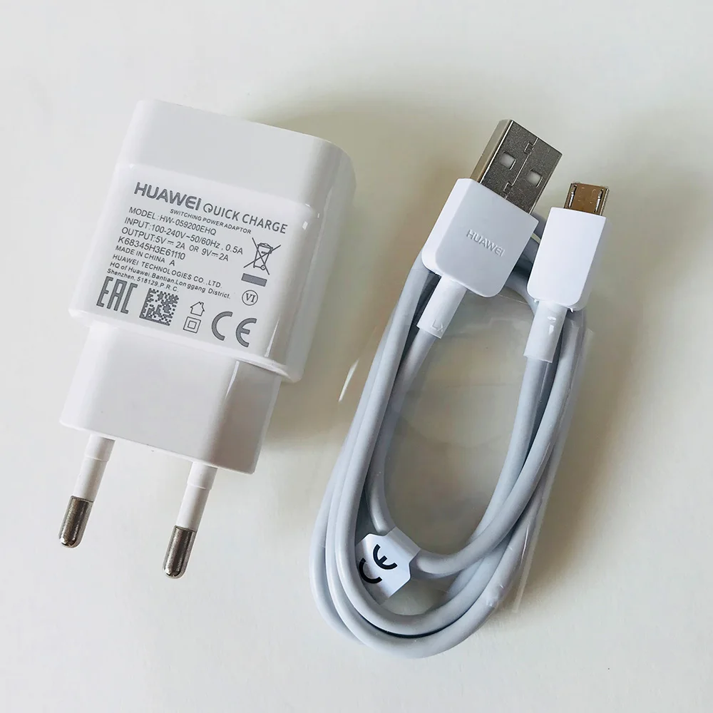 Зарядное устройство QC 2,0 для Huawei 9 в 2 а с европейской вилкой, адаптер для быстрой зарядки с micro USB-кабелем для NOVA 3, 3i, 4, honor 9, 8x, p7, p8, p9, p10, p20 lite, mate 7, 8