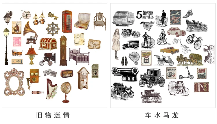 Винтажные наклейки Yoofun 60 шт.упак., наклейки в стиле ретро с цве...