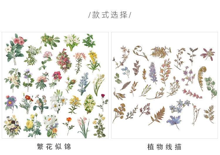 60 шт. винтажные наклейки с цветами растений s Декор альбом для скр...