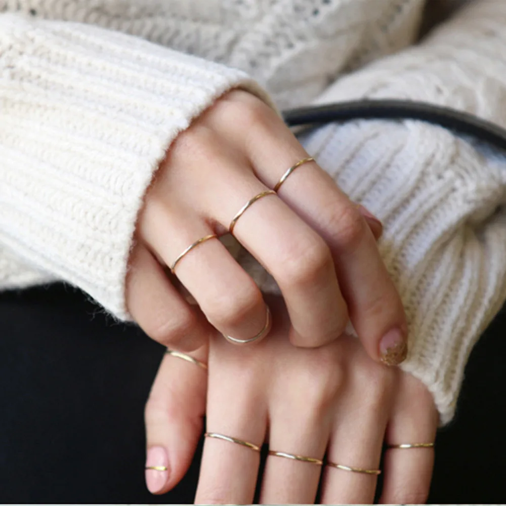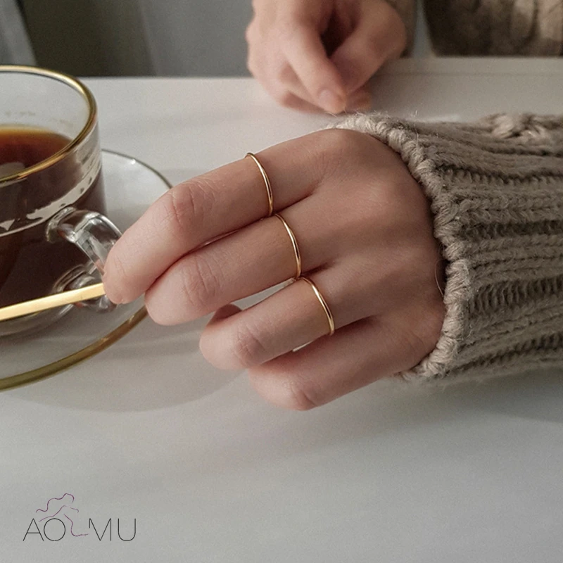 Женское цельнокроеное кольцо на палец AOMU, ювелирное изделие голеного цвета с гладкой и тонкой круглой вставкой, ширина 1 мм