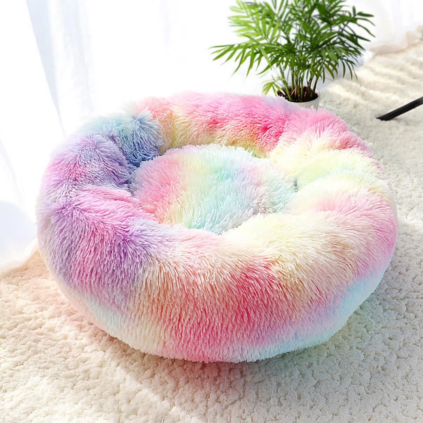 Пушистая Успокаивающая кровать для собак, длинная плюшевая кровать в виде пончика, для домашних животных, Круглый ортопедический шезлонг, спальный мешок, питомник, для кошек, щенков, Лежанка